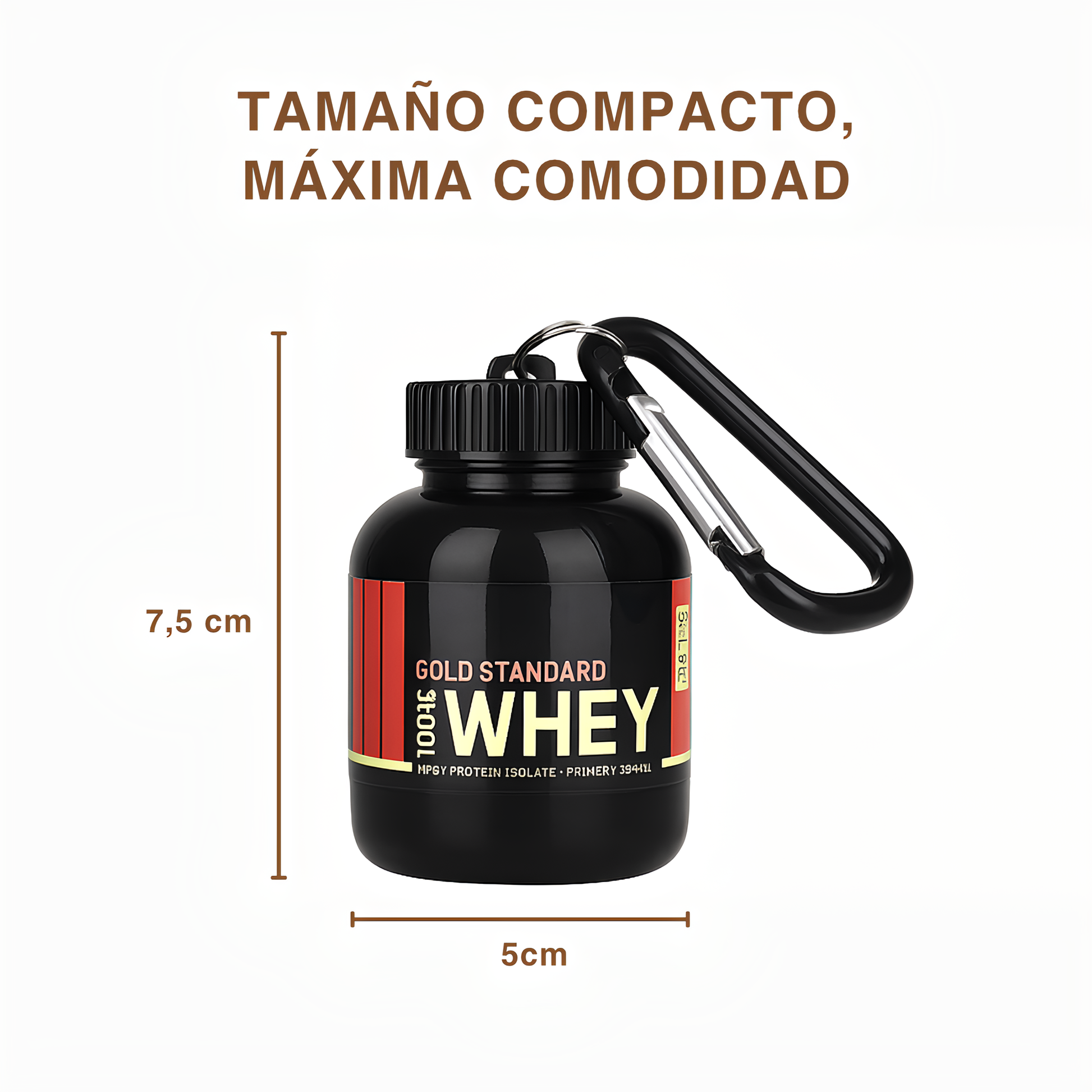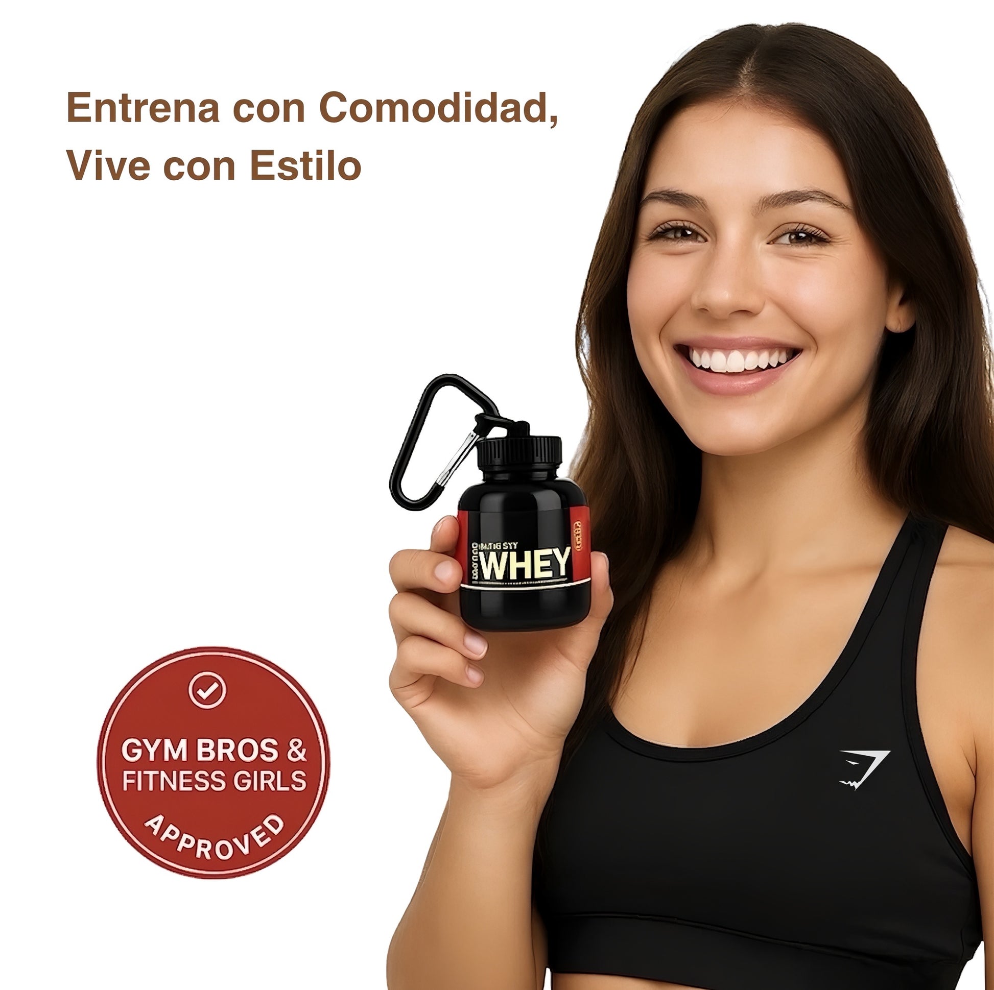 Su diseño inteligente combina llavero, tapa inferior y embudo para que llevar, servir y consumir tus suplementos sea más fácil