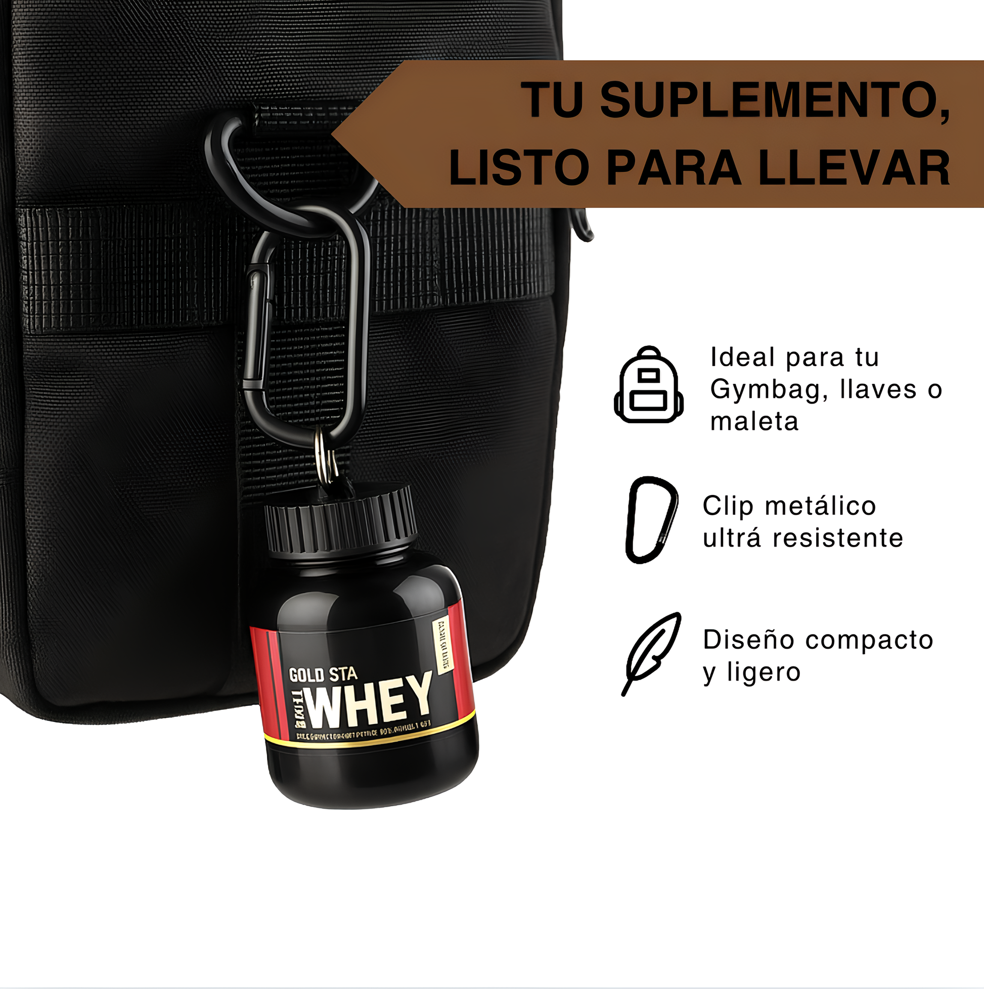 Olvídate de cargar envases grandes. Guarda tu suplemento listo en un accesorio ligero que se adapta a tu ritmo de vida fitness